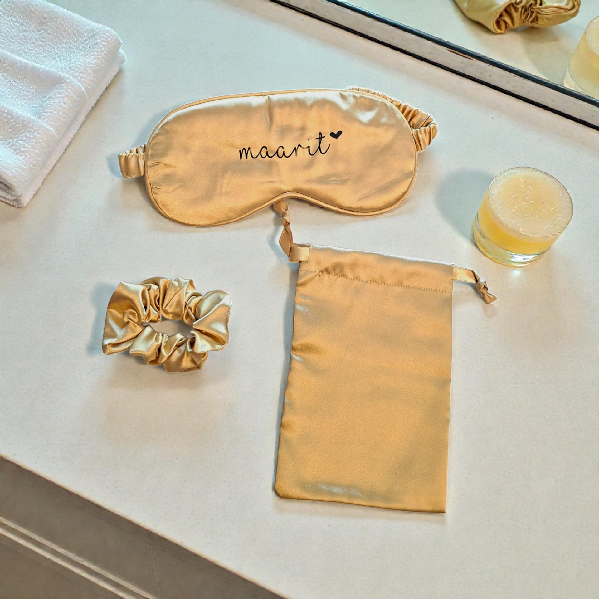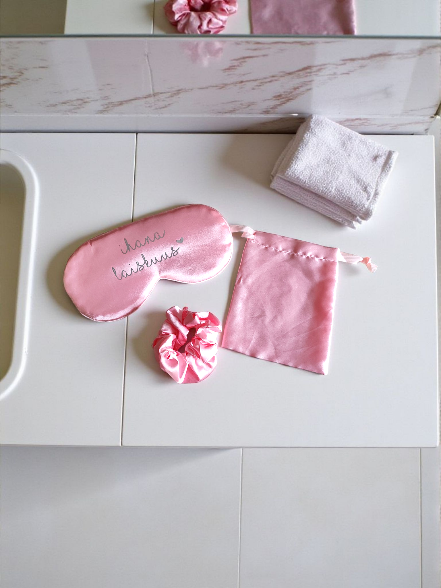 Kaunis ja pehmeä unimaski omalla nimellä tai tekstillä tekee nukkumisesta entistä mukavampaa. Personoitu unimaski on ihana lahja kaasolle, morsiamelle, ystävälle tai itselle.