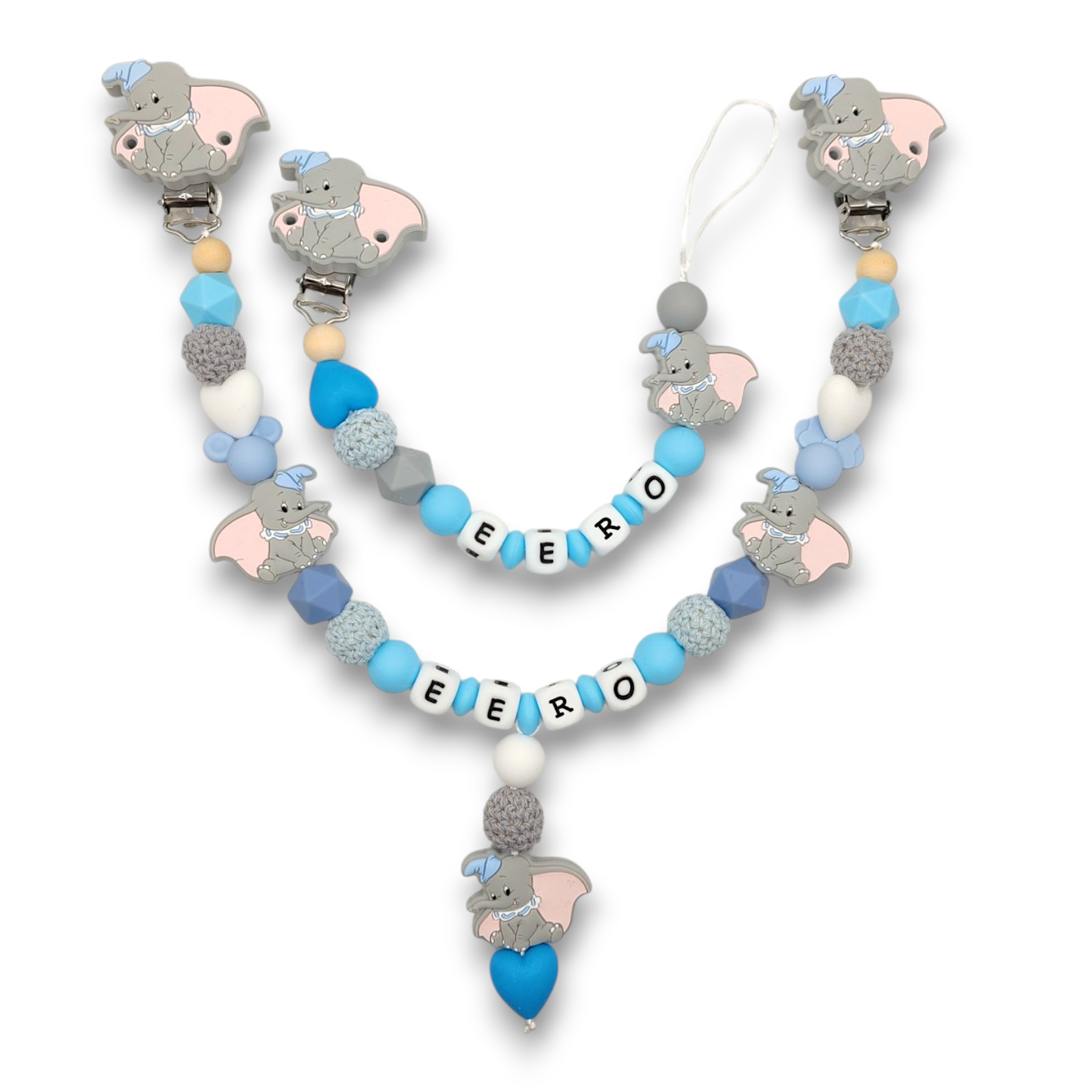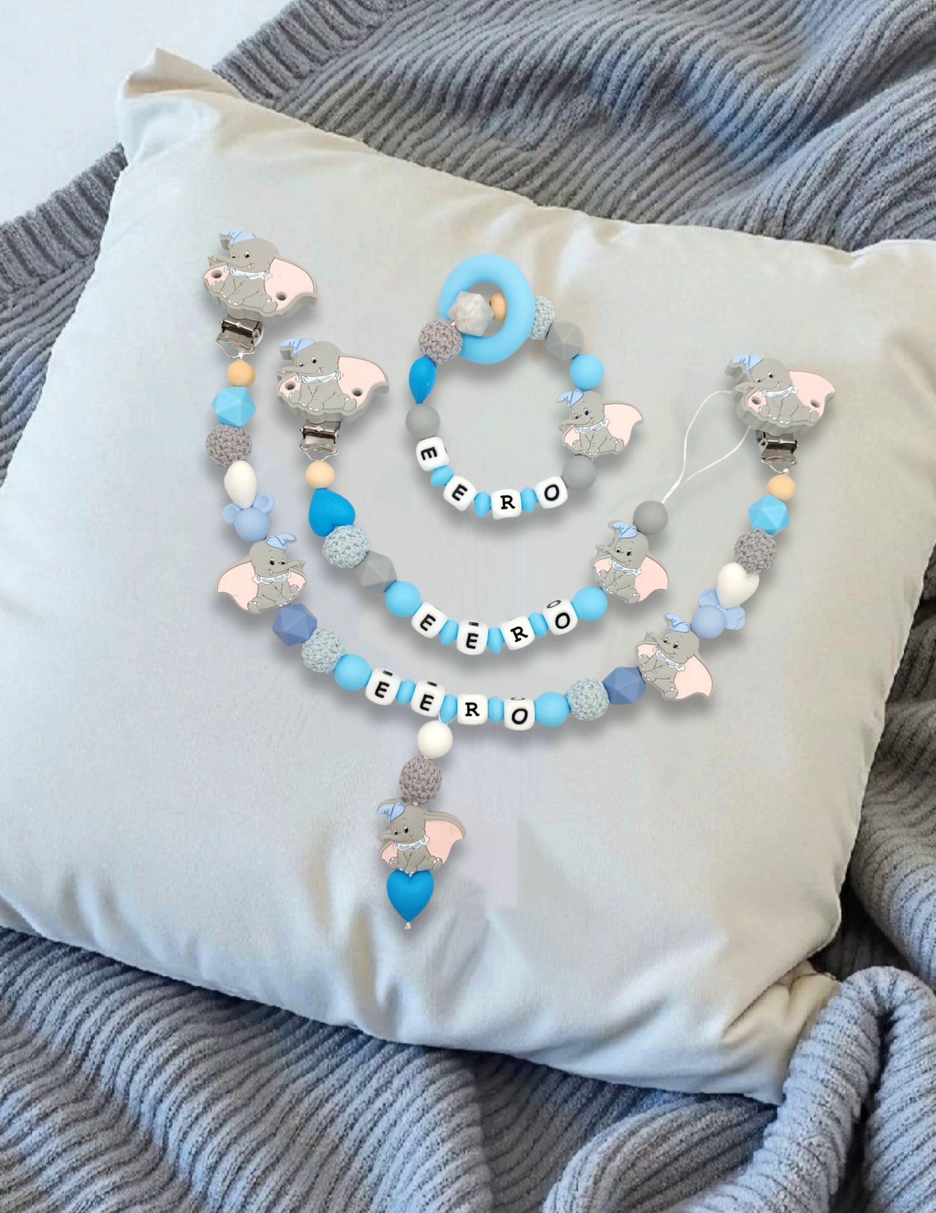 Tämä ihastuttava vauvasetti sisältää vaunulelun, tuttinauha ja pururenkaan, jotka kaikki voidaan personoida lapsen nimellä. Jokainen tuote valmistetaan käsityönä huolella ja tarkkuudella, asiakkaan toiveiden mukaisesti.