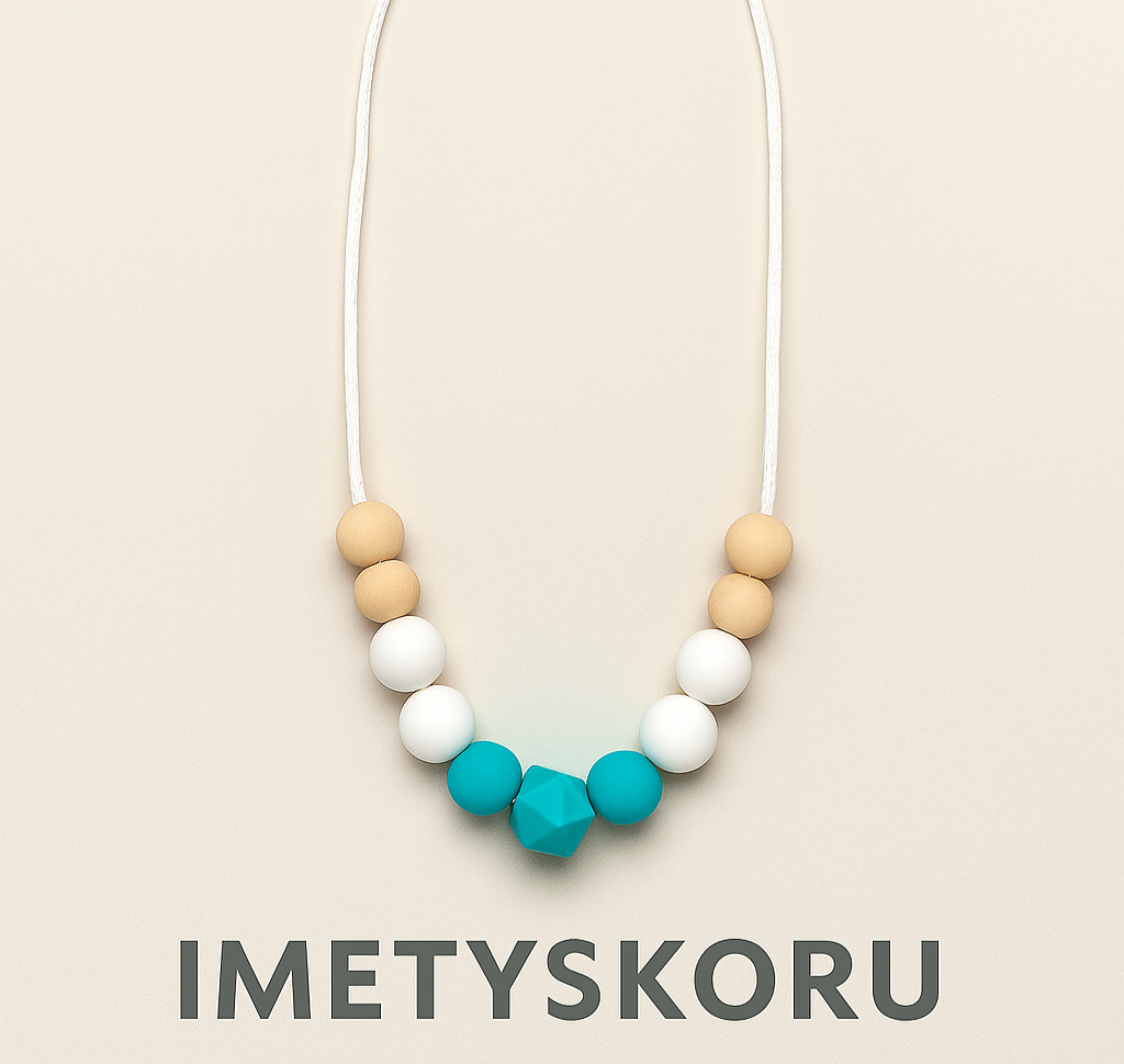 Tämä imetyskoru on suunniteltu äideille, jotka haluavat tarjota vauvalle turvallisen puru-kohteen imetyksen aikana ja samalla käyttää kaunista asustetta. Korun helmet ovat elintarvikelaatuisesta silikoonista ja puusta – BPA-vapaita, ftalaatittomia ja myrkytön valinta vauvan herkkään suuhun. Silikoniosat hellivät ikeniä ja auttavat lievittämään hampaiden puhkeamisen aiheuttamaa kipua.