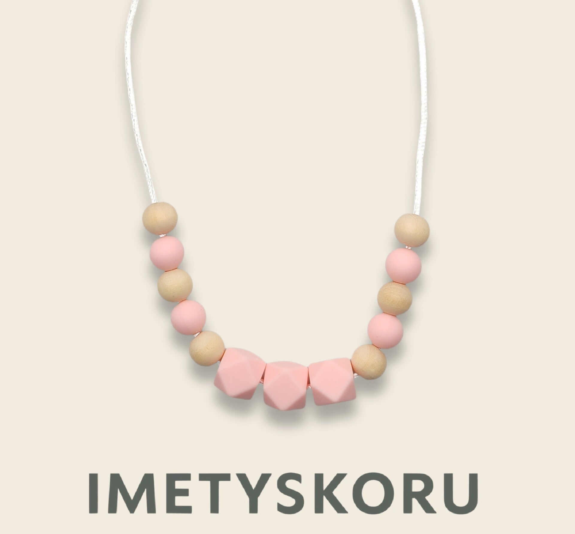 Imetyskoru silikonilla & puuhelmillä – turvallinen & kaunis vauvan purukoru